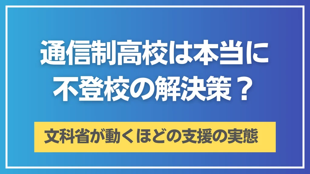 文科省が動いた!通信制高校の“質”と不登校支援のリアルを解説